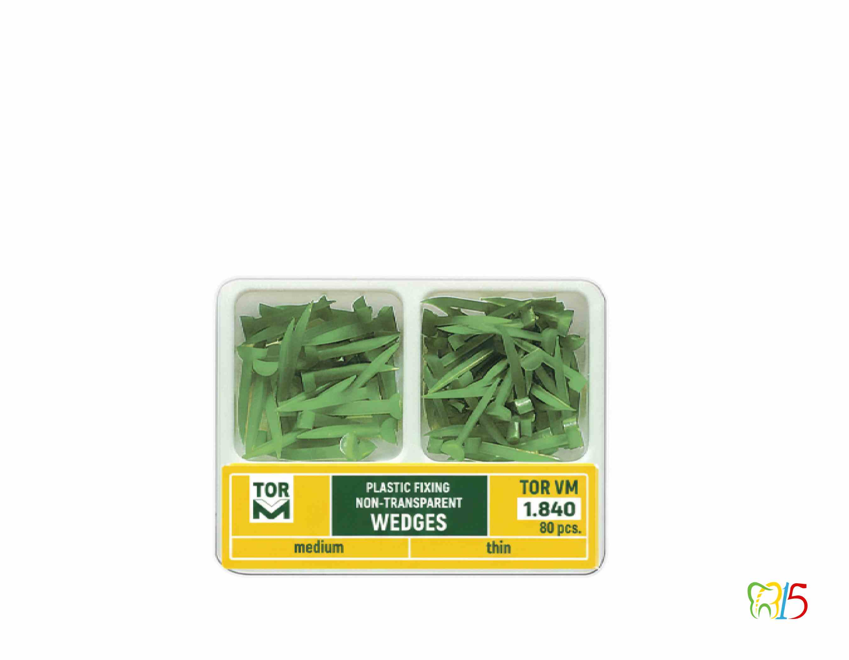 وج‌های پلاستیکی TorVM، یک جایگزین مقاوم در برابر جذب رطوبت برای وج‌های چوبی هستند و برای استفاده در ترمیم‌های کلاس II کامپوزیت و آمالگام به کار می‌روند. رنگ سبز در سیستم رنگ‌بندی وج‌های دندانپزشکی، معمولاً نشان‌دهنده یک سایز متوسط است که برای استفاده در دندان‌های پرمولار یا فضاهای بین دندانی استاندارد مناسب است. وظیفه اصلی این وج‌ها، فشردن نوار ماتریکس به سطح دندان در ناحیه لثه‌ای (Cervical Margin) برای آب‌بندی کامل (Sealing) و جلوگیری از نشت مواد ترمیمی است. همچنین با اعمال نیروی اندک، به جداسازی موقت دندان‌ها کمک کرده و ایجاد یک نقطه تماس محکم (Tight Contact Point) را تضمین می‌کنند.