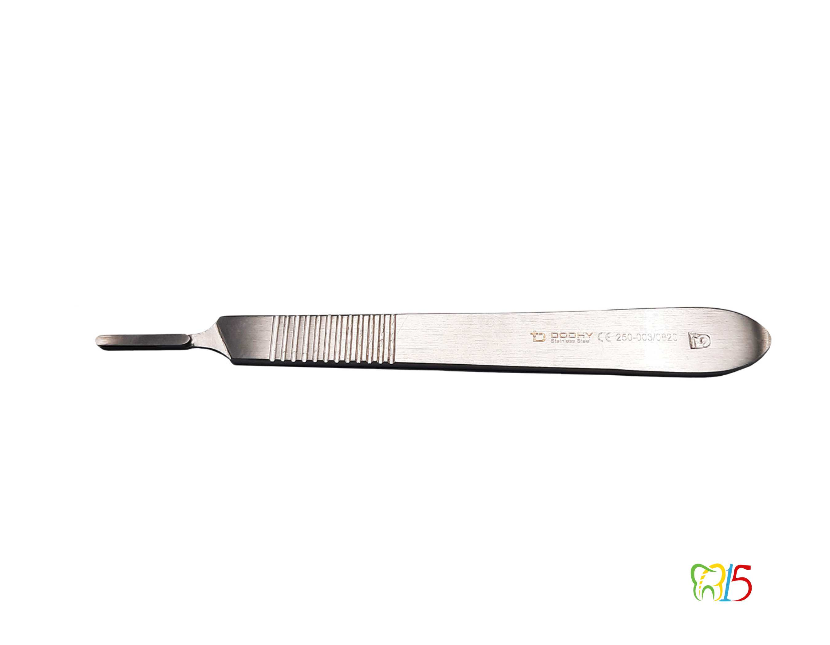 دسته تیغ بیستوری سایز ۳ یک ابزار جراحی باریک و ارگونومیک است که از استیل ضد زنگ (Stainless Steel) گرید پزشکی ساخته می‌شود و وظیفه نگهداری و تثبیت تیغ‌های برش جراحی را بر عهده دارد. این سایز دسته به طور خاص برای استفاده با تیغ‌های کوچک‌تر (مانند تیغ‌های سایز ۱۰ تا ۱۵c، که برای برش‌های ظریف و دقیق استفاده می‌شوند) طراحی شده است. کاربرد اصلی آن در ایجاد برش‌های ظریف و کنترل شده در جراحی‌های دهان، جراحی‌های پریودنتال (لثه)، بیوپسی‌ها، و ایجاد برش‌های اینسیژنال در بافت‌های نرم است. طراحی ارگونومیک و وزن متعادل آن، دقت و ظرافت مورد نیاز جراح را در حین ایجاد برش‌های حساس فراهم می‌کند و به راحتی قابلیت استریل شدن (اتوکلاو) را دارد.