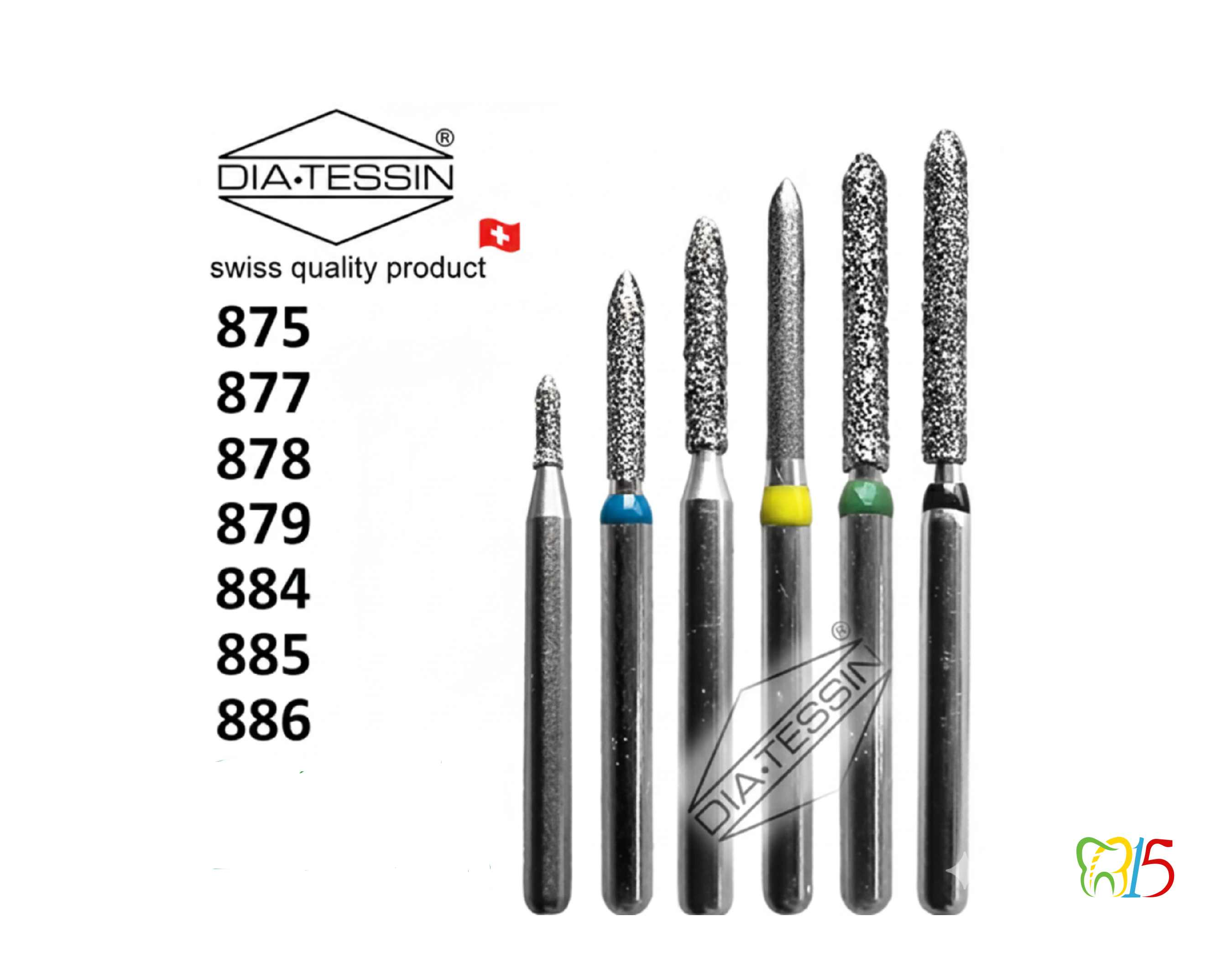 فرزهای DiaTessin، تولید شده توسط کمپانی ونتی سوئیس، به دلیل تعهد به دقت و کیفیت بالا، در سطح جهانی شناخته شدهاند. این برند، طیف کاملی از ابزارهای چرخنده شامل فرزهای الماسه، کارباید و سرامیکی را عرضه میکند. فرزهای الماسه دیاتسین با پوشش الماس همگن و چسبندگی عالی، برای تراش سریع، آمادهسازی کراون (روکش) و ونیر با کمترین لرزش و گرمای ممکن طراحی شدهاند. همچنین فرزهای تخصصی با گریتهای فاین (مانند رنگ زرد یا قرمز) برای فینیشینگ و پالیش نهایی ترمیمهای کامپوزیت، و مدلهای کارباید برای برداشت ترمیمهای فلزی و آمالگام ارائه میشوند. سیستم کدگذاری رنگی استاندارد (مشکی، سبز، قرمز، زرد) امکان انتخاب دقیق درجه زبری الماس را برای دندانپزشک فراهم میکند.
