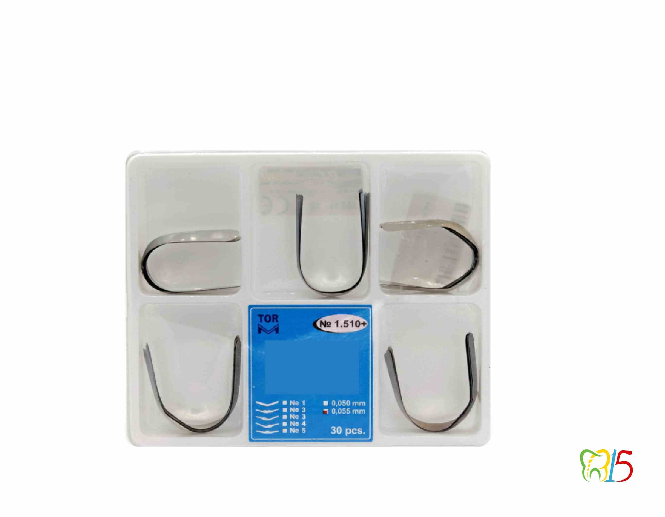 کیت آسورت ماتریکس فرمدار پرمولر TorVM شامل مجموعهای از ماتریکسهای پیشفرمدهیشده است که برای بازسازی صحیح دیوارههای دندانی پرمولر طراحی شدهاند. این ماتریکسها با انحنای آناتومیک مناسب، امکان ایجاد کانتور طبیعی و تماس بیندندانی صحیح را فراهم میکنند و کیفیت ترمیم نهایی را بهطور قابلتوجهی بهبود میبخشند. کیت بهصورت آسورت عرضه شده و شامل سایزها و اشکال مختلف است تا دندانپزشک بتواند متناسب با شرایط حفره، گزینه ایدهآل را انتخاب کند. جنس ماتریکسها مقاومت خوبی دارد و در حین تراکم کامپوزیت تغییر شکل نمیدهد، در نتیجه بازسازی دقیق و کنترلشده دیوارههای پروگزیمال را ممکن میسازد.